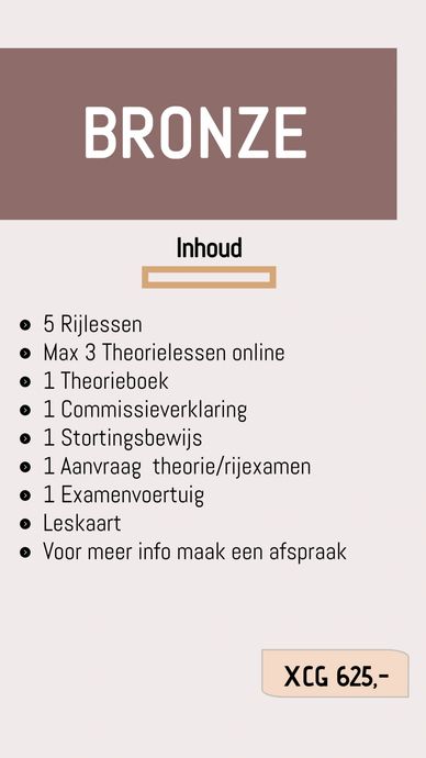Voor studenten zonder rijervaring met een normaal leertempo.